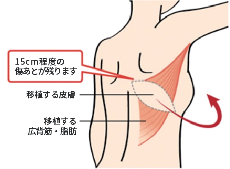• 皮弁を採取した側の背部に傷ができ、背中に左右差を生じる。