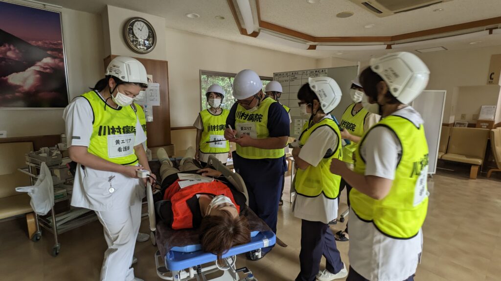 テント設営からトリアージ、診察、災害カルテ記載等、一連の訓練をしました。